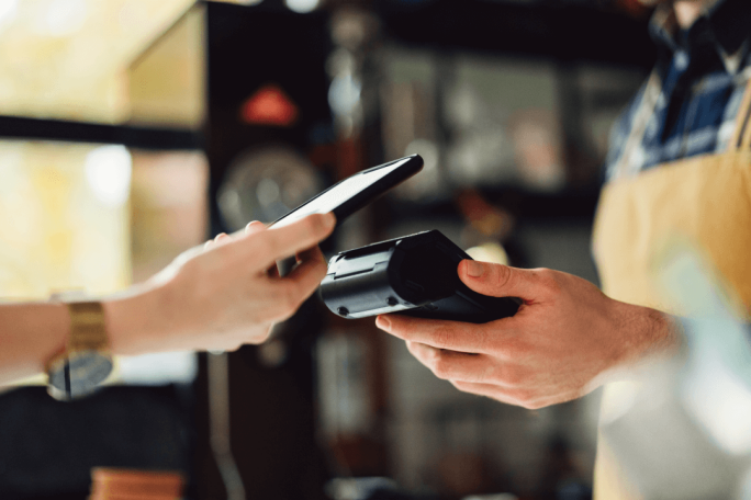 2. Kur të jeni pranë terminalit POS mbani iPhone-in tuaj pranë terminalit të pagesës.