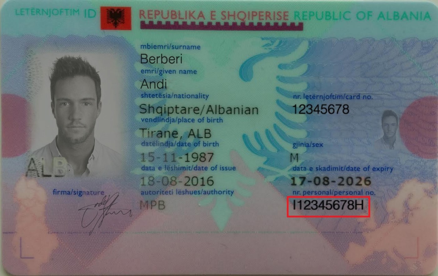 Vendosni numrin tuaj personal të identitetit si më poshtë qarkuar.