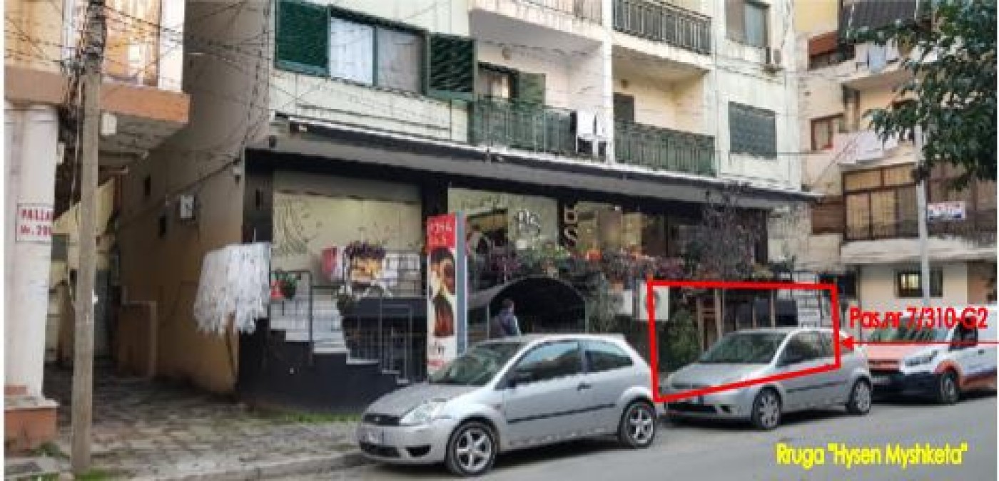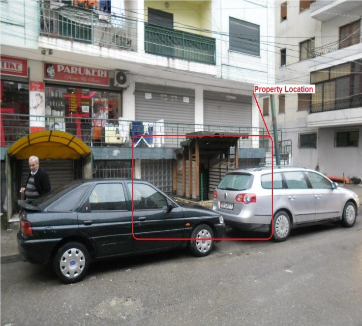 Prona, referuar dokumentacionit pronësor , është një garazh/njësi shërbimi,me sipërfaqe176 m2.Zona përreth është zonë atraktive me përdorim miks. Ajo ndodhet në katin nëntokësor, nën nivelin e gjysëm kuotës të ndërtimit të një pallati të ri 8-katësh+1kat nëntokë, i ndërtuar pas vitit 2004.Kati nëntokë është me garazhe, kati përdhe i pallatit është me ambjente tregtare dhe shërbimi ndërsa katet e tjera lart përdoren për banim.Garazhi ka qenë përdorur si bar-kafe më përpara.Hyrja në garazh realizohet nëpërmjet disa shkallëve zbritëse dhe një strehe me konstruksion druri drejtkëndore,me tjegull kanadeze. Shkallët zbritëse jane të shtruara me mermer dhe hyrja në pronë, realizohet nëpërmjet një qepeni metalik me ngjyrë jëshile.