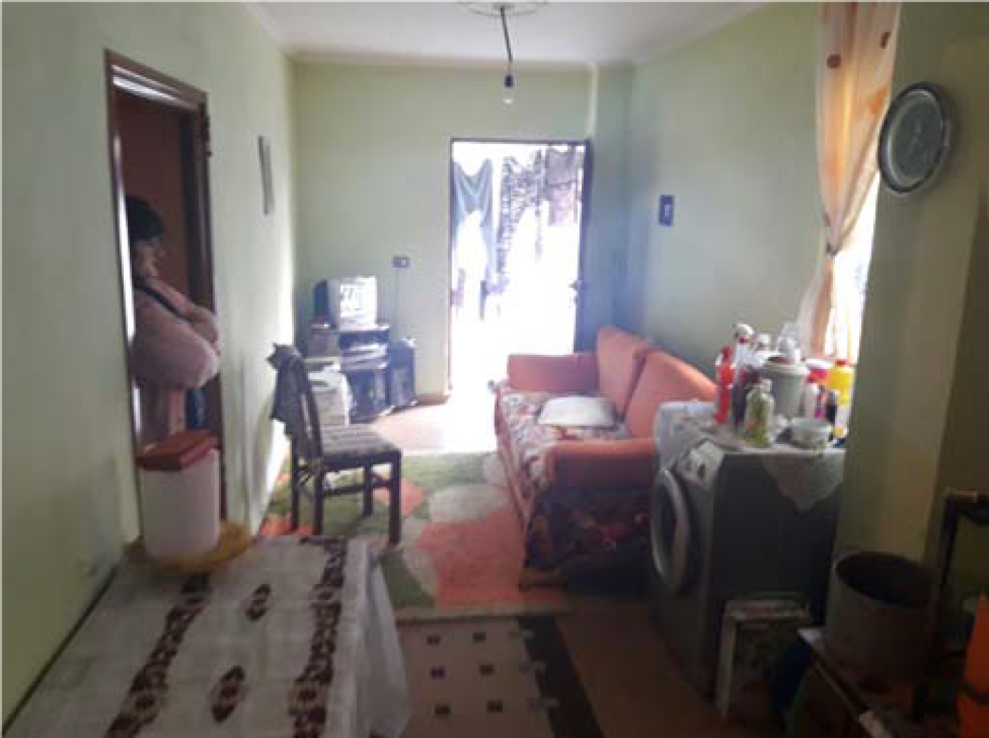 Prona është një shtëpi 1-katëshe banimi me sipërfaqe të regjistruar ndërtimore 50 m2, e ndodhur në Lagjjen “5 Maji”, në qytetin e Elbasanit, në pjesën veriore të qytetit, rreth 600 m në jug të Kompleksit Spitalor Rajonal Elbasan.Zona përreth përbën një zonë atraktive me përdorim kryesisht rezidencial.Zona është e njohur, pasi aty janë vendosur Spitali, Universitetit, Konviktet e Universitetit, Shkolla të mesme dhe 9-vjeçare. Prona ka akses të mirë me rrugë. Kështu nëpërmjet rrugëve të brendshme të zonës,prona lidhet rreth 80 m në jug me rrugën “Ibrahim Dimci”e cila në perëndim në lindje të rrugës “28 Nëntori” dhe kjo e fundit rreth 800 m në jug, e lidh pronën me bulevardin “Qemal Stafa” dhe më tej me qëndrën e qytetit.Shtëpia një katëshe, është ndërtim ekzistues i para viteve 90 dhe ka konstruksion me mure masive mbajtës me tullë të plotë, e kombinuar me blloqe betoni, nën një mbulesë me çati me kapriatë druri, e mbuluar me tjegulla. Fasada e shtëpise 1-katëshe, është e gjitha e suvatuar dhe e lyer.Nga brenda shtëpia përbëhet nga një dhomë ndenje dhe kuzhinë, dy dhoma gjumi dhe tualet.Hyrja në shtëpinë 1–katëshe, realizohet nga ana lindore, direkt nga sheshi para saj ishtruar me beton. Porta hyrëse e shtëpisë 1-katëshe, ishte e blinduar, e sigurtë.Prona në momentin e inspektimit kishte rifinitura të brendshme, të një cilësie te mire.
