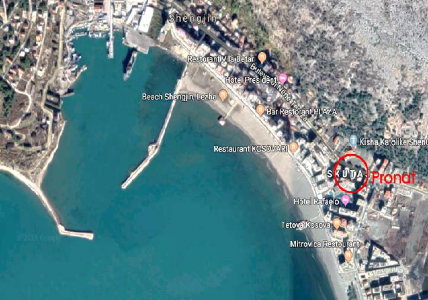 Zona përreth përbën nje zone rezidenciale/plazhi, me infrastrukture te mire rrugore; me rruge dhe sheshe te brendshme te sistemuara.Blloku i pallateve ku ben pjese prona eshte me dendesi urbane relativisht te larte.Zona pershkohet nga rruga hyrese per ne qytetin e Shengjinit.Te gjitha rruget me te cilat lidhet prona jane te sistemuara dhe te shtruara me asfalt.Bulevardi paraqitet ne gjendje shume te mire funksionale; territori perresh ndertesave eshte i shtruar me pllaka dekorative, eshte i rrethuar me mur te ulet betoni kombinuar me kangjella metalike, si dhe ka gjelberim e peme.