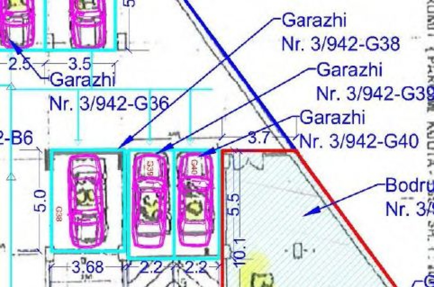 Ndertesa ne te cilen ben pjese garazhi ndodhet ne rrugen " Petro Nini Luarasi ", ne qytetin e Tiranes prane Tregut Elektrik dhe shkolles Mihal Grameno. Vendparkimi G 38 ka dimensione 5.0 x 3.7 m dhe ndodhet ne katin e dyte nentoke te nderteses.Kalimi per ne kete kat realizohet me ane te pandusit b/a nga kati i pare nentoke.Aksesi per ne katin e pare nentoke te nderteses realizohet me ane te pandusit b/a, te pozicionuar ne anen veri - lindore te saj drejteperdrejte nga rruga " Todi Shkurti ".Zona ku ndodhet ndertesa eshte zone urbane me orientim banimi dhe sherbimi e cila karakterizohet nga nje nderthurje e objekteve ekzistues te tipit pallate 4-5 kat me objekte te reja shumekate si dhe objekte te ulta 2-3 kat te tipit vila individuale.Kufizimet e nderteses, ne te cilen ben pjese prona jane:ne Veri - me ndertese 1 kat, ne Jug - me rruge te brendshme kalimi midis ndertesave, ne Lindje - me rrugen " Todi Shkurti ", ne Perendim - me shesh ne funksion te nderteses.Hyrja ne bodrume dhe garazhe realizohet nga hapesirat e perbashketa te kalimit. Gjithashtu kalimi ne katin e dyte nentoke realizohet edhe me ane te dy ashensoreve te nderteses.Hyrja dhe dalja ne ndertese realizohet me ane te rruges " Todi Shkurti ", e pozicionuar ne anen lindore te nderteses.