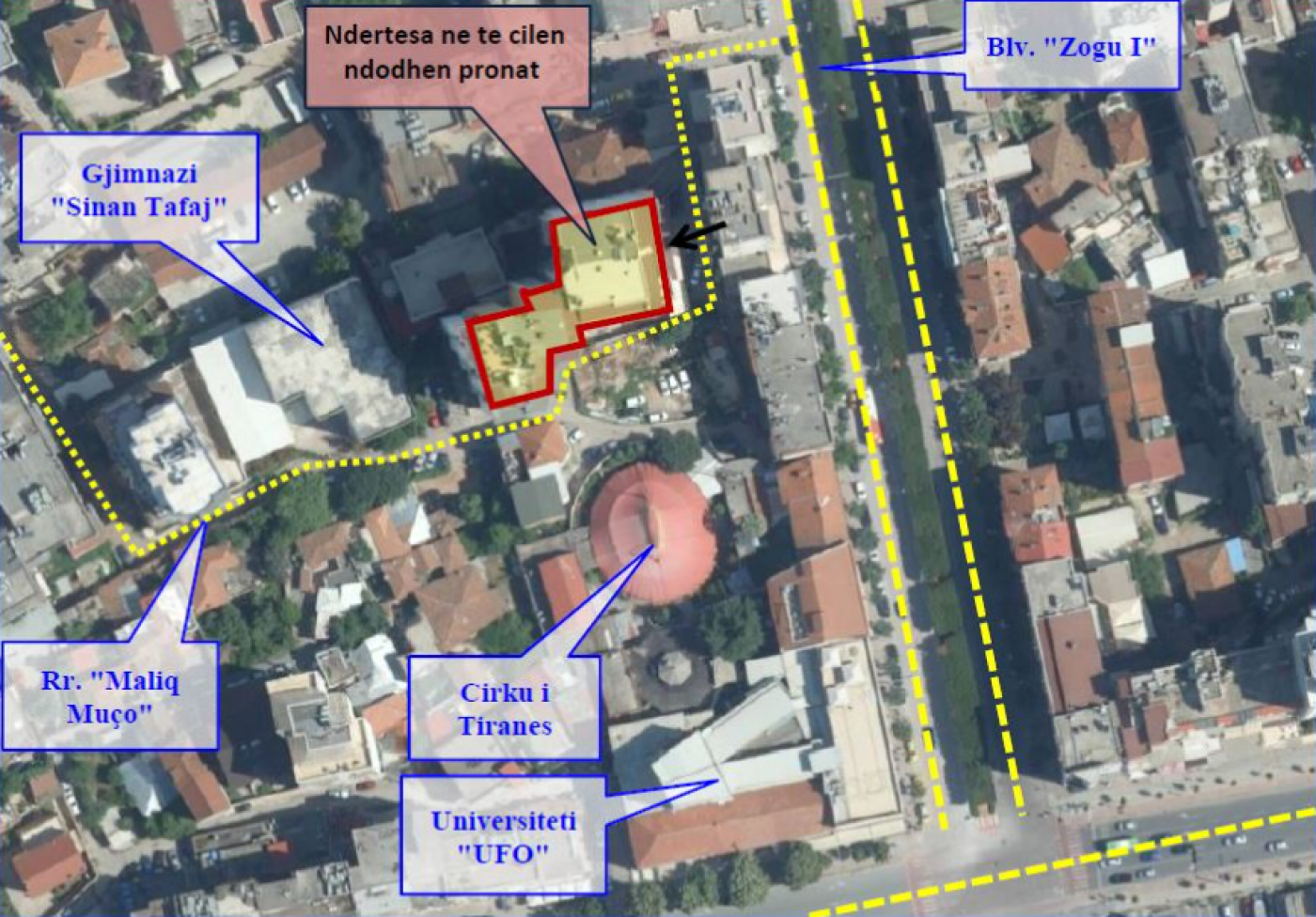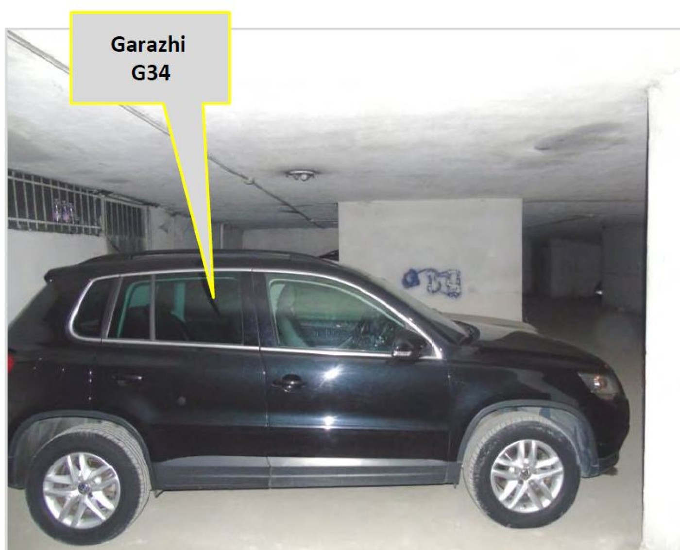 Ndertesa ne te cilen ben pjese garazhi ndodhet ne rrugen " Petro Nini Luarasi ", ne qytetin e Tiranes prane Tregut Elektrik dhe shkolles Mihal Grameno. Vendparkimi G 34 ka dimensione 2.5 x 5.2 m dhe ndodhet ne katin e dyte nentoke te nderteses.Kalimi per ne kete kat realizohet me ane te pandusit b/a nga kati i pare nentoke.Aksesi per ne katin e pare nentoke te nderteses realizohet me ane te pandusit b/a, te pozicionuar ne anen veri - lindore te saj drejteperdrejte nga rruga " Todi Shkurti ".Zona ku ndodhet ndertesa eshte zone urbane me orientim banimi dhe sherbimi e cila karakterizohet nga nje nderthurje e objekteve ekzistues te tipit pallate 4-5 kat me objekte te reja shumekate si dhe objekte te ulta 2-3 kat te tipit vila individuale.Kufizimet e nderteses, ne te cilen ben pjese prona jane:ne Veri - me ndertese 1 kat, ne Jug - me rruge te brendshme kalimi midis ndertesave, ne Lindje - me rrugen " Todi Shkurti ", ne Perendim - me shesh ne funksion te nderteses.Hyrja ne bodrume dhe garazhe realizohet nga hapesirat e perbashketa te kalimit. Gjithashtu kalimi ne katin e dyte nentoke realizohet edhe me ane te dy ashensoreve te nderteses.Hyrja dhe dalja ne ndertese realizohet me ane te rruges " Todi Shkurti ", e pozicionuar ne anen lindore te nderteses.