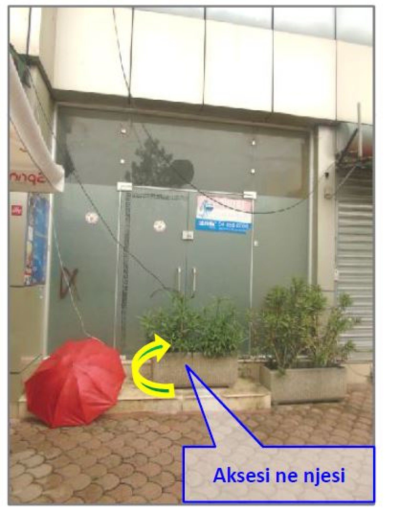 Njesia nr. 6/445-N9 pozicionohet në katin përdhe të ndërtesës 12 kat dhe është i orientuar në fasadën jugore te saj.Hyrja në njësinë realizohet nga fasada perëndimore e saj nëpërmjet trotuarit që rrethon ndërtesen në të gjitha anët e saj, i cili është i shtruar me pllaka dekorative betoni.Njësia përbehet nga një ambient kryesor shërbimi dhe një ambient tualeti.Fasada kryesore e njësisë (fasada jugore) nga e cila kryhet aksesi në njësi është e realizuar me vetrate xhami masive të temperuar, të mbeshtetur në profile metalike.