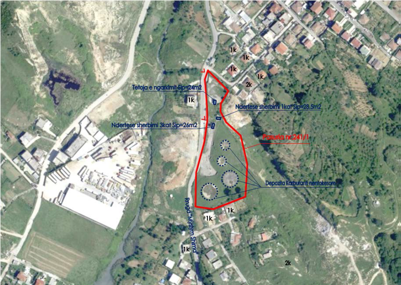 Prona eshte nje parcele toke e regjistruar si e llojit Truall, me siperfaqe 8020 M2, mbi te cilen ndodhen depo karburanti e godine 1 kat me siperfaqe ndertimore 5600 M2.Prona ka funksionuar dikur si terminal depozitash karburanti, e realizuar para viteve 90’.