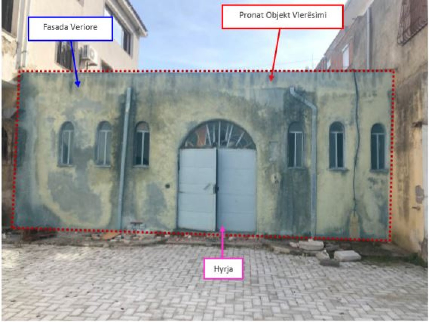 Zona ku ndodhet pronaeshte e pajisur me infrastrukturen kryesore te nevojshme per banim dhe zhvillim aktiviteti komercial. Ndertesa magazine eshte me konstruksion themele tip plinta b/a, kollona, trare b/a dhe solete b/a. Muret dhe tavani jane te suvatuar, ndersa dyshemeja eshte e shtruar me pllaka gresi te nje cilesie relativisht te mire.Muret ne ambientet ndihmese jane veshur pjeserisht me pllaka majolike dhe pjeserisht jane suvatuar dhe lyer me boje. Tavani eshte i suvatuar dhe lyer me boje.Ndertesa ka nje lartesi rreth 4.0 m. Dritaret jane prej druri dhe jane pajisur me kangjelle mbrojtese.